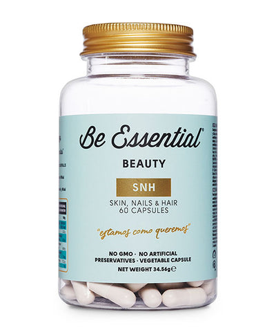 SNH de Be Essential contiene una combinación de nutrientes de gran eficacia para fortalecer y mantener tu pelo, piel y uñas en perfectas condiciones, evitando su deterioro. SNH es rico en silicio, vitaminas del grupo B, aminoácidos, zinc y vitamina D.